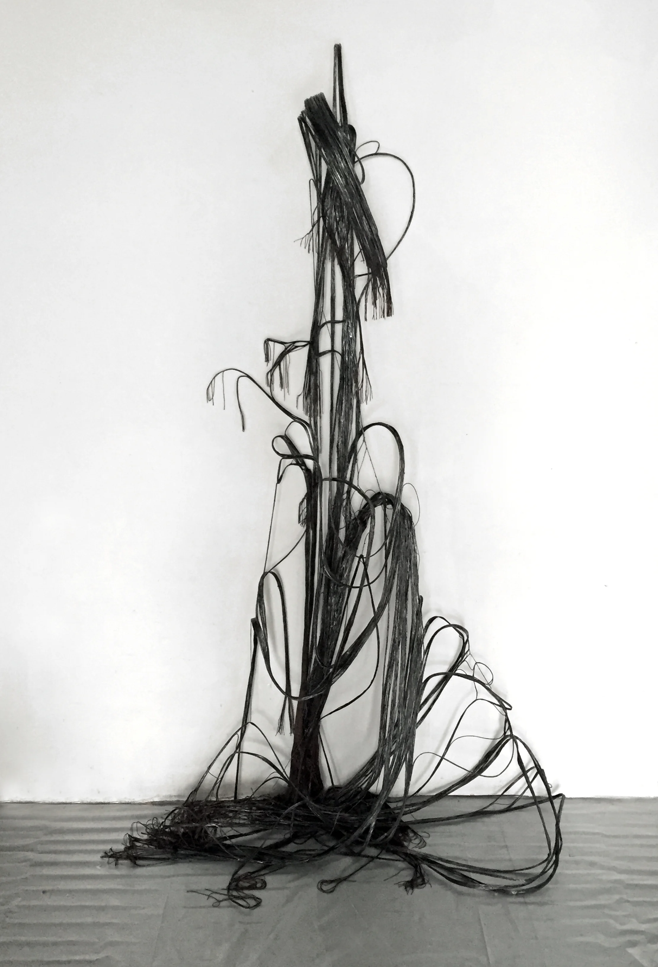 Unraveling Void, 2015 Graphite and mixed medium on silk/ polyester thread 76 ½ x 19 x 13 inches (194.3 x 48.3 x 33 cm)